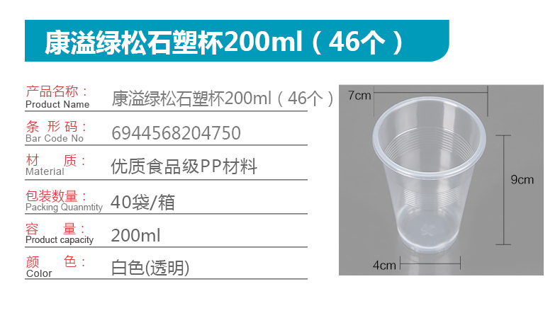 康溢绿松石塑杯200ml(46个)
