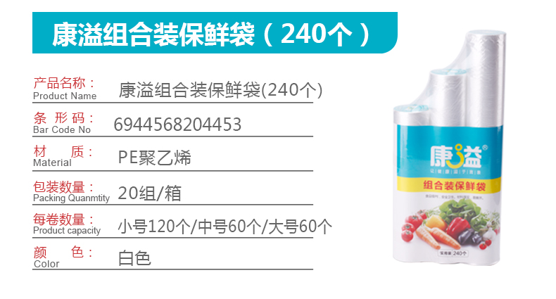 康溢加厚加大号背心式保鲜袋35*42(200个)