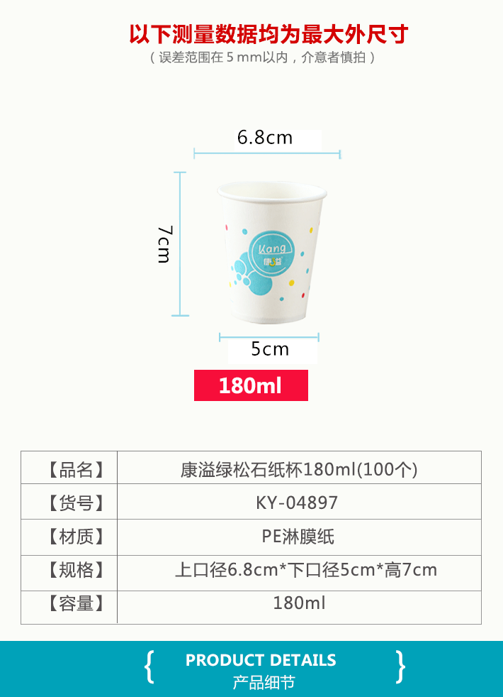 康溢绿松石纸杯180ml(100个)